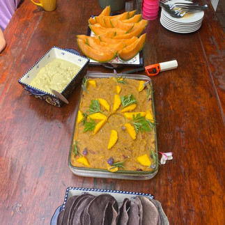 Acompañados por Krishna que estuvo presente en el altar de la cocina, pudimos disfrutar de suculencias alimenticias sanas y deliciosas, que preparó Narayani gran devota y excelente maga alquimista en la cocina
